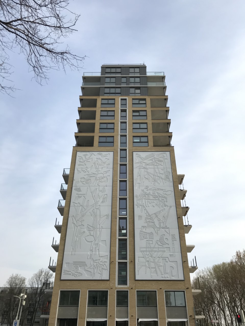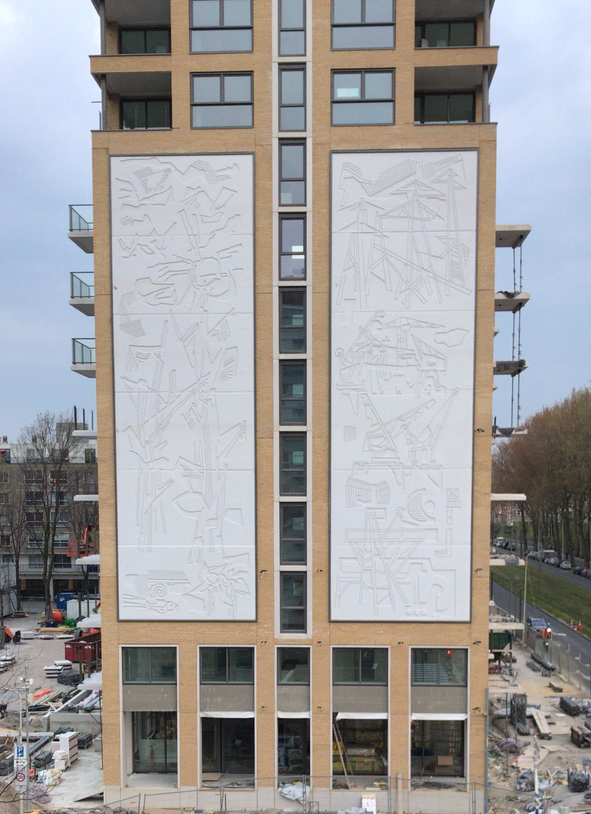 Dit markante gevelkunstwerk, genaamd “Natuur en Techniek”, bevond zich voorheen op de zijkant van het voormalige kantoorgebouw aan het Verhulstplein. Het is een zogenaamde sgraffito van beeldend kunstenaar Harry op de Laak (Venlo, 1925 – Horn, 2012). Het werk werd in 1957 voltooid bij de bouw van het voormalige kantoorgebouw. Het werk is typerend voor de naoorlogse wandkunst die tijdens de wederopbouw van Nederland op veel plaatsen werd gerealiseerd. In 2017 werd het leegstaande kantoorgebouw aan het Verhulstplein gesloopt om plaats te maken voor De President. Op verzoek van de gemeente en buurtbewoners werd er destijds afgesproken dat er getracht zou worden om het kunstwerk te behouden. Geen eenvoudige opgave, want de afzonderlijke panelen waren zwaar én kwetsbaar tegelijkertijd. Men is er in geslaagd om het kunstwerk tijdens de sloop met zorg te verwijderen. In het nieuwe ontwerp heeft het kunstwerk weer een prachtige plaats gekregen. Hoewel De President nog niet gereed is, is het gevelkunstwerk, opgeknapt en wel, vanaf nu weer terug op de min of meer vertrouwde plek.